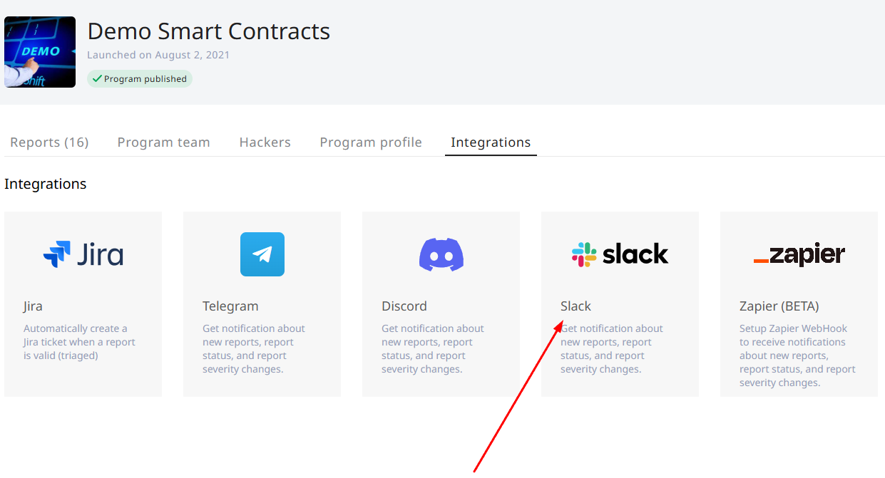 * Select a Bug Bounty Program that you want to integrate with your Slack workspace.